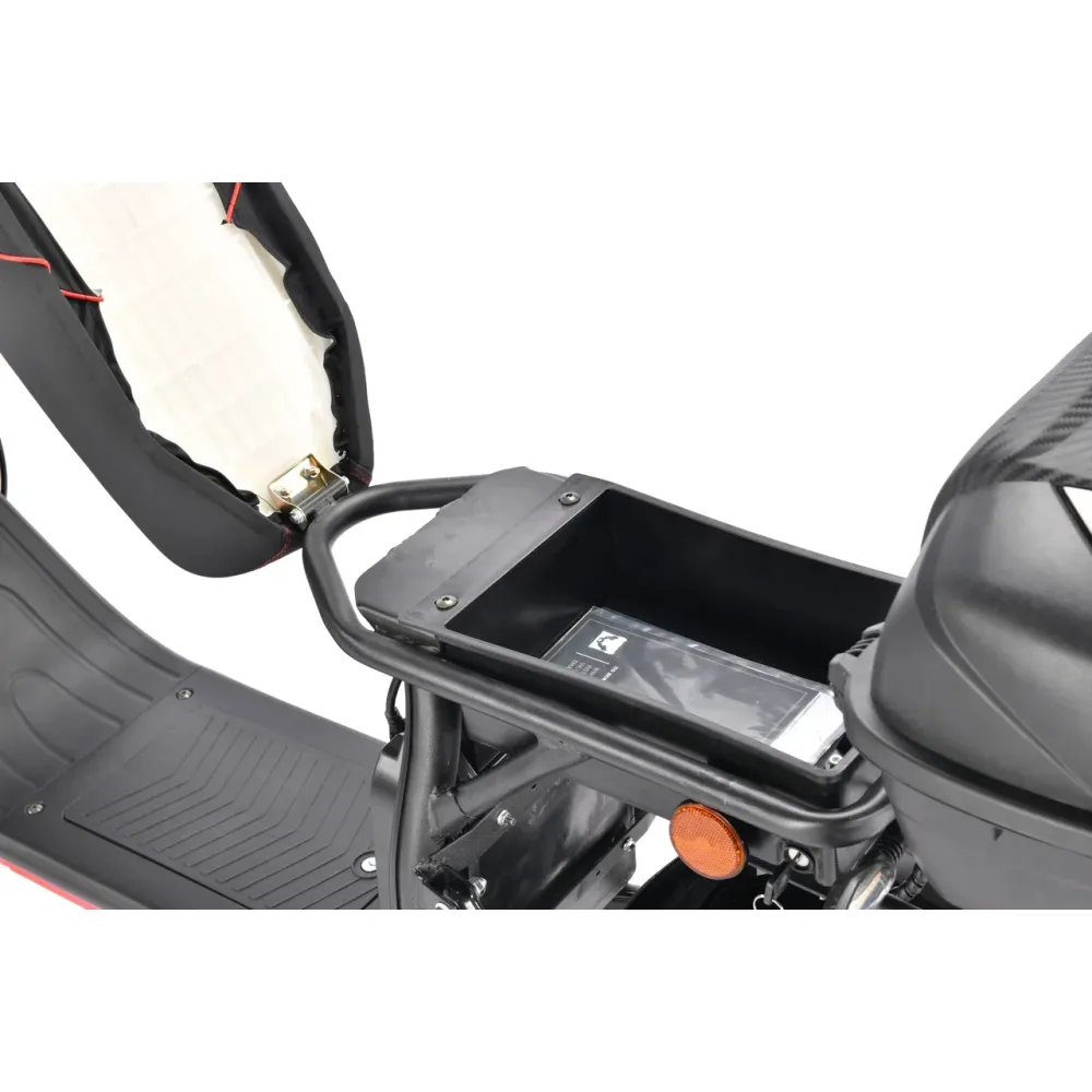 Электроскутер CityCoco WS-Pro+ 2500W черный – выпущенная в 2021году отличается от предыдущих моделей увеличенной мощномтью и зоной комфорта. Электроскутер рассчитана на 2-х ездоков, не имеет посторонних мелочевок. Начинка – современная, проста в использовании. Агрессивные проекты созданы для езды по разной местности. Визуально посмотреть на товар, оценить качество, изучить технические характеристики предлагает наш интернет-магазин. Обращаем внимание на цену. Она приемлемая в сравнении с другими аналогичными моделями.