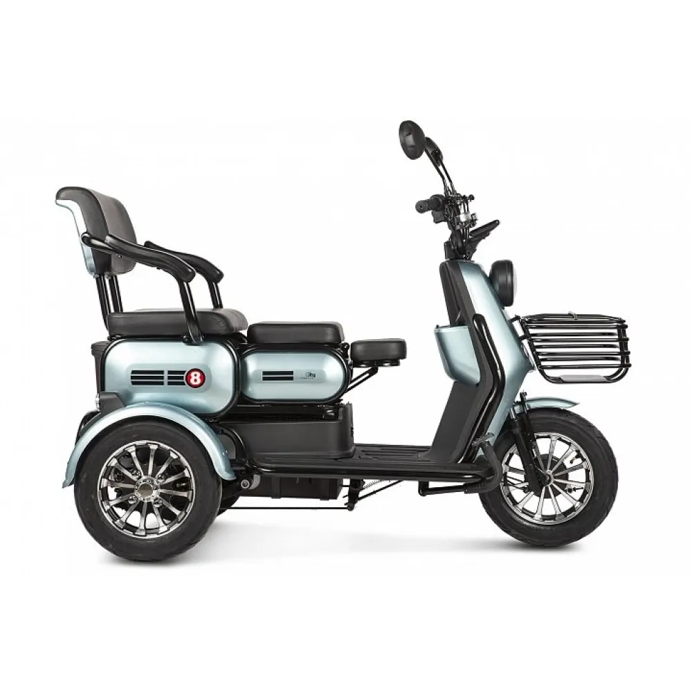 Модель с мощностью 500 Вт без труда развивает скорость до 25 км/час и преодолевает 30 км пути. Мягкое объемное сиденье повторяет анатомические части тела, не вызывает усталости, снижает нагрузку с позвоночника. Имеется дополнительное сиденье, которое чаще используется для катания детей.