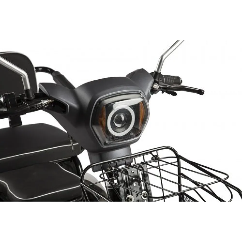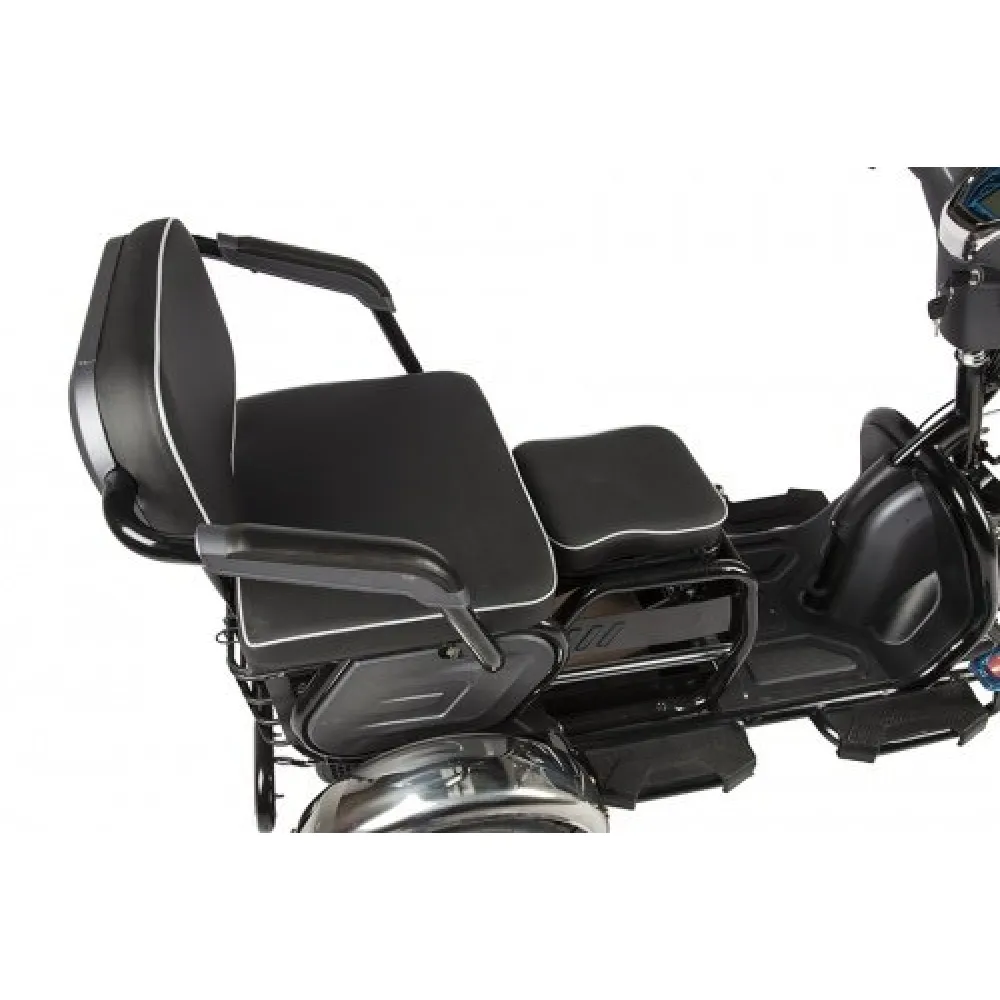 Приятное цветовое решение и совершенные формы заметно радует глаз райдера. Заряд батареи и основные показатели техники отображаются на современном ЖК-дисплее. Модель оснащена надежным двигателем мощностью 500 Вт. Улучшение характеристик техники позволяют развивать максимальную скорость 25-30 км/час. Для повышения комфорта поездок производитель оснастил тс дополнительным пассажирским сидением. Кресла имеют анатомически правильную форму и современное покрытие. Регулируемая рулевая стойка обеспечивает движение без дискомфорта.