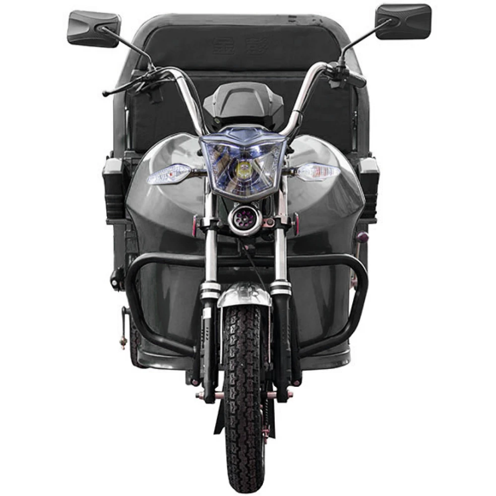 Использование высококачественного покрытия делает электротрицикл неуязвимым перед различными деформациями и повреждениями. Вилка и рулевая часть изготовлены из прочного металла. Пробег до 50 км на одном заряде допускается благодаря надежному аккумулятору. Главным козырем модели смело можно назвать наличие интеллектуального зарядного устройства. Для большей устойчивости на неровной дороге модель оснащена широкими колесами с протекторами.