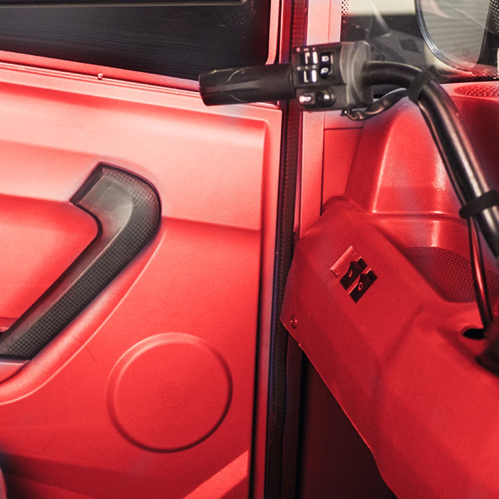 Представляем вашему вниманию Rutrike КАРГО Кабина 1500 в ярком красном цвете. Этот грузовой электротрицикл оснащён закрытым кузовом, что позволяет работать в любых погодных условиях, обеспечивая комфорт и защиту водителя. Просторный грузовой отсек размером 1500×1050×330 мм позволяет перевозить до 600 кг груза. Мощный мотор 1000 Ватт обеспечивает пробег до 40 км на одном заряде, а максимальная скорость достигает 25 км/ч. Мотоциклетный руль обеспечивает удобное управление, а задний барабанный тормоз гарантирует надежную остановку. Идеальный выбор для эффективной доставки в городе.