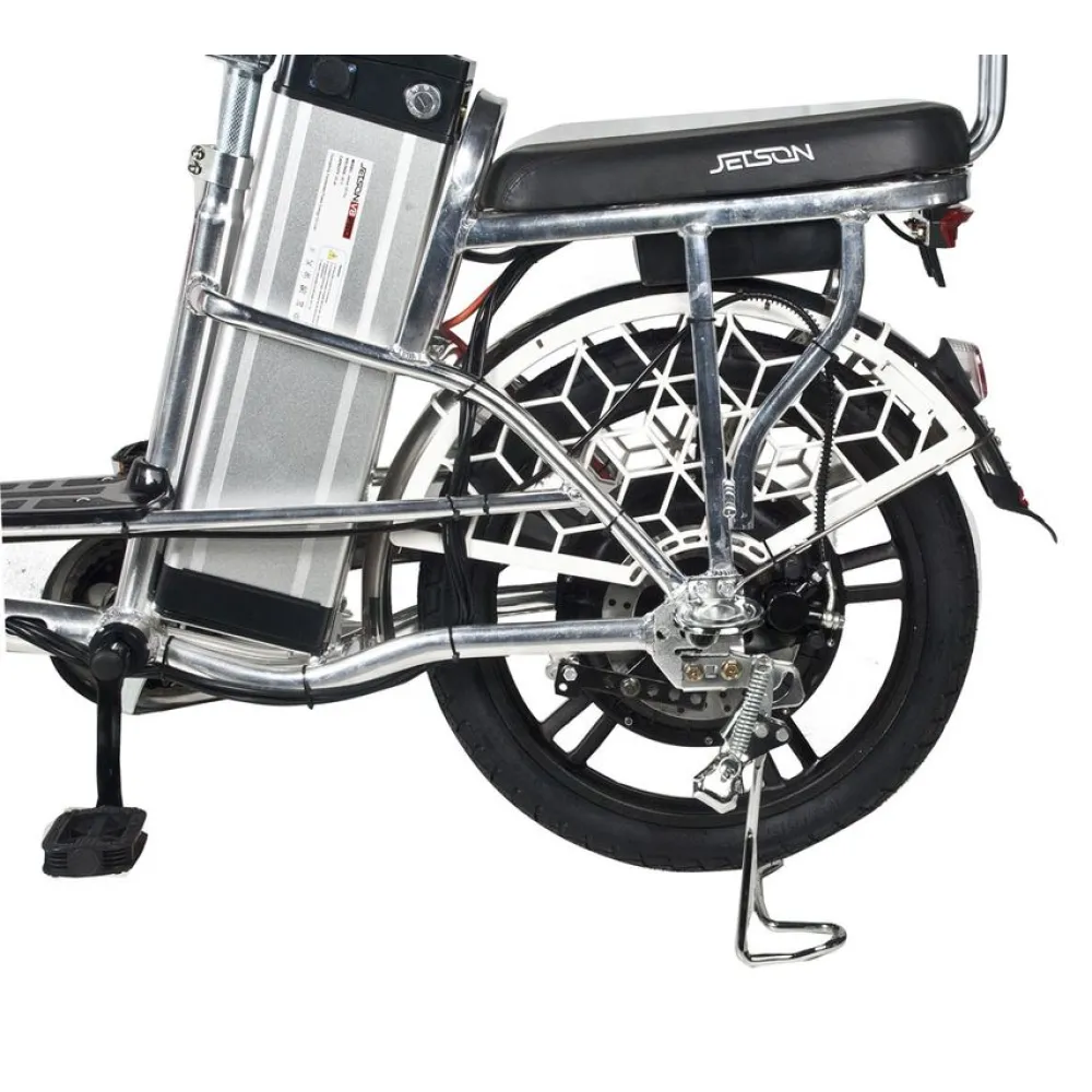 Велосипед Jetson Pro Max с электроприводом является непревзойдённой заменой личного и общественного транспорта. Его компактность и манёвренность позволяют с комфортом использовать его на самых загруженных улицах города, без особых проблем перевозить в транспорте, если понадобится, и хранить так, чтобы никогда не мешался. Алюминиевая рама велосипеда легкая и прочная. Она выдерживает до 200 килограмм, что позволяет перевозить пассажира и любые вещи, которые поместятся в корзину.