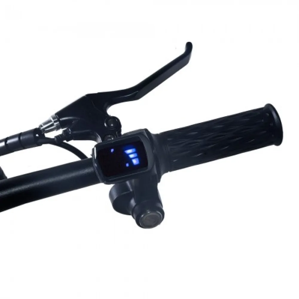 Мощность электромотора 350 Вт и емкости батареи – 12 А*ч достаточно для развития приличной скорости – до 45 км/час и преодоления расстояния до 42 км пути. Байк оснащен механическими тормозами и 14-дюймовыми накатистыми колесами. Батарея размещена за подседельной частью в специальном блоке. Основная конструкция рамы – заниженная, изготовлена из облегченного алюминия, дает возможность эксплуатации тс прекрасной половиной пола. Анатомическое переднее и пассажирское седло снижает нагрузку на позвоночник, исключает ощущение усталости.