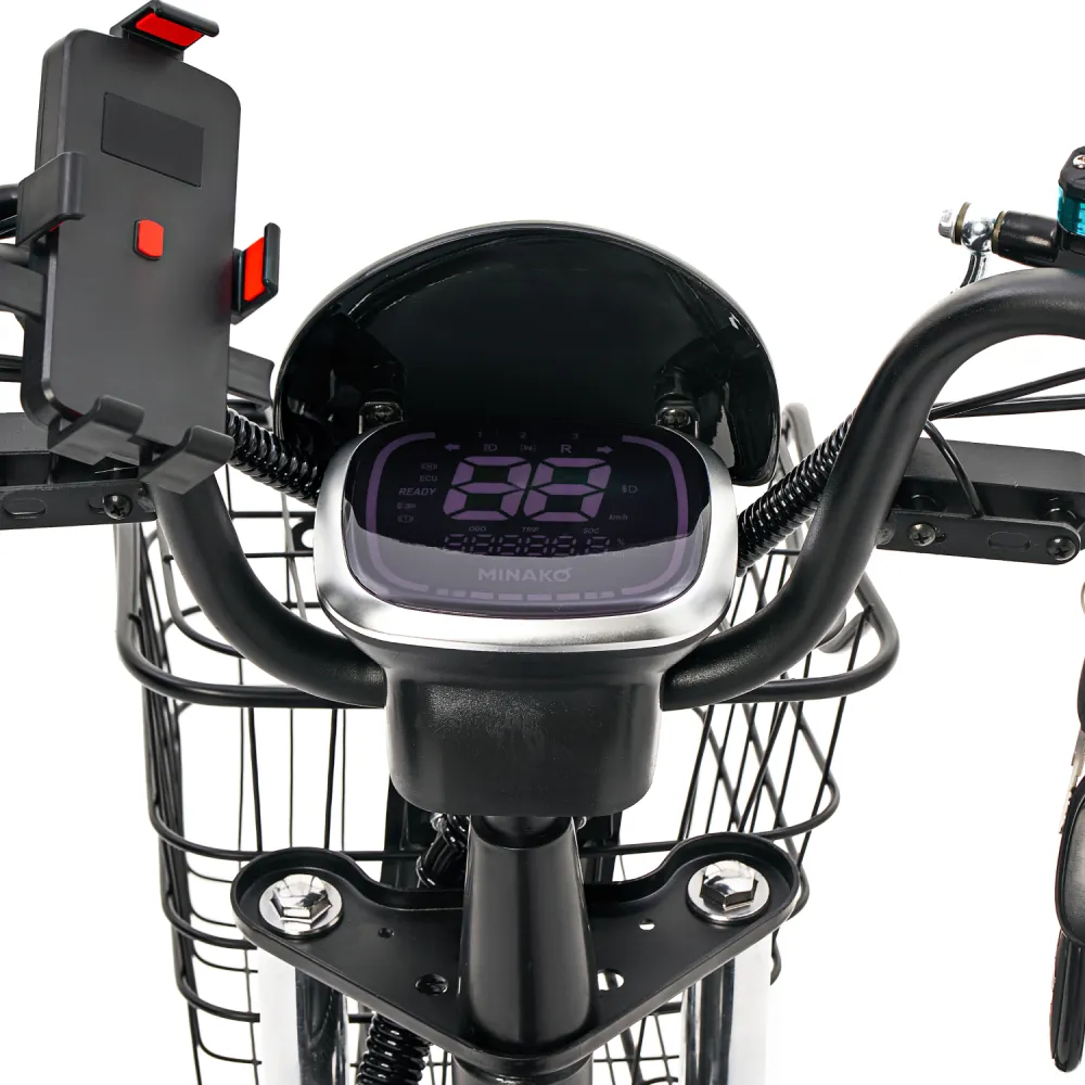 Не в комплекте, но возможно установить: - багажник - сиденье для пассажира - передняя корзина